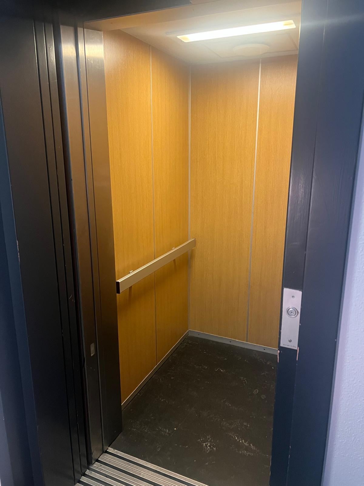 afgesloten entree met brievenbussen, bellentableau, een lift en trappenhuis.