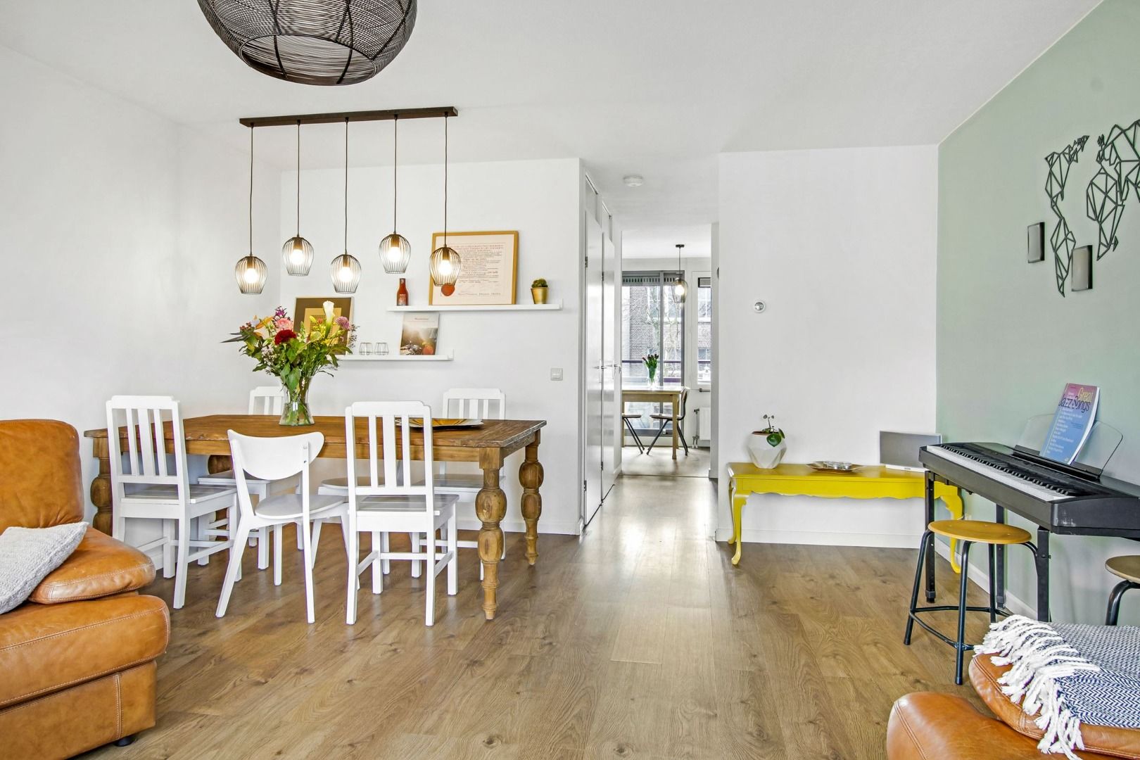 via de trap kun je naar boven waar de hal is met het tweede toilet en een grote berging waar de cv-ketel is geplaatst en de wasmachine en droger. Daarna stappen we de woonkamer van ruim 20 m2 binnen. Een heerlijk lichte ruimte waar je een gezellige zithoek maakt en een fijne eethoek. Aan de voorzijde kijk je uit over een mooi groen plantsoen.