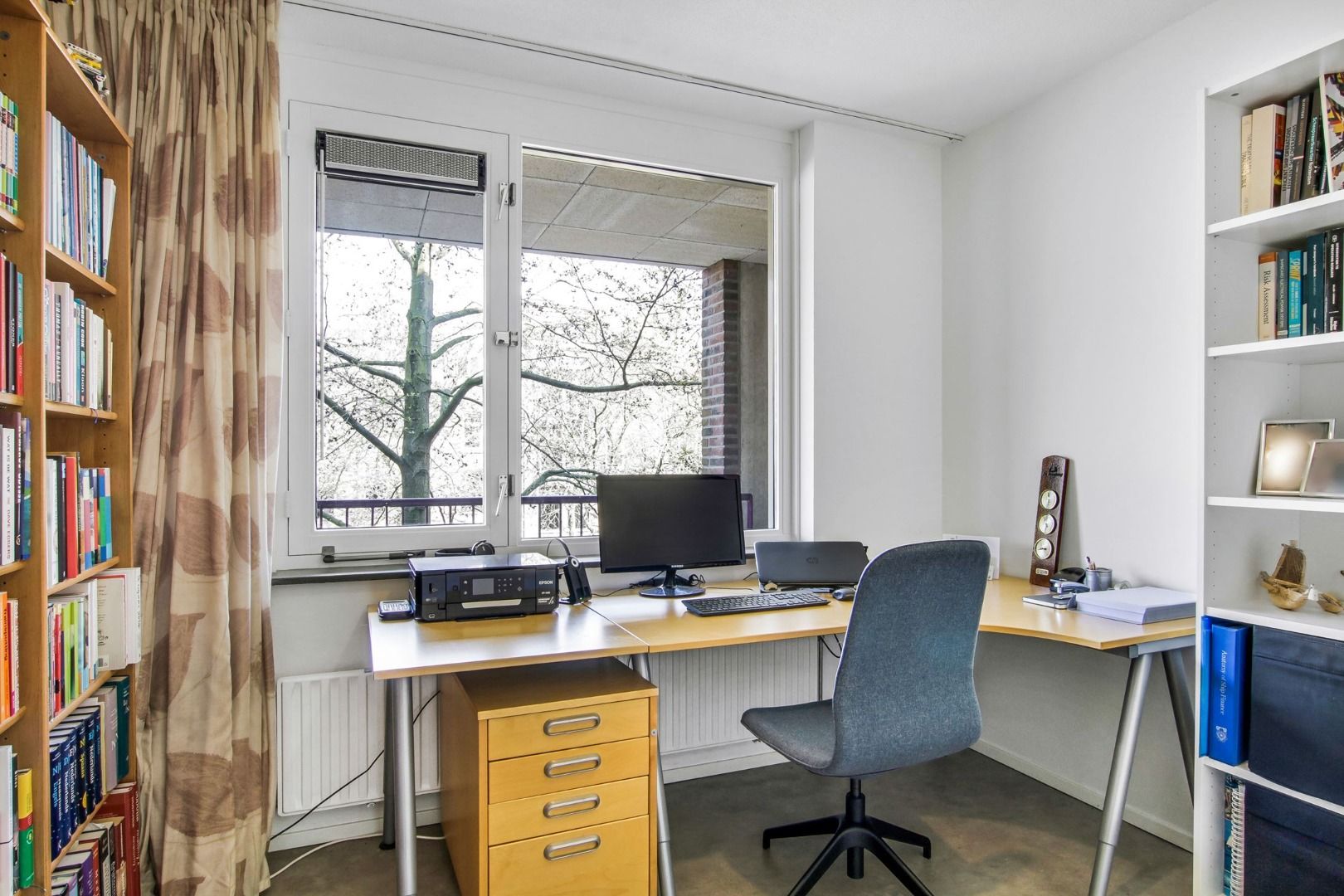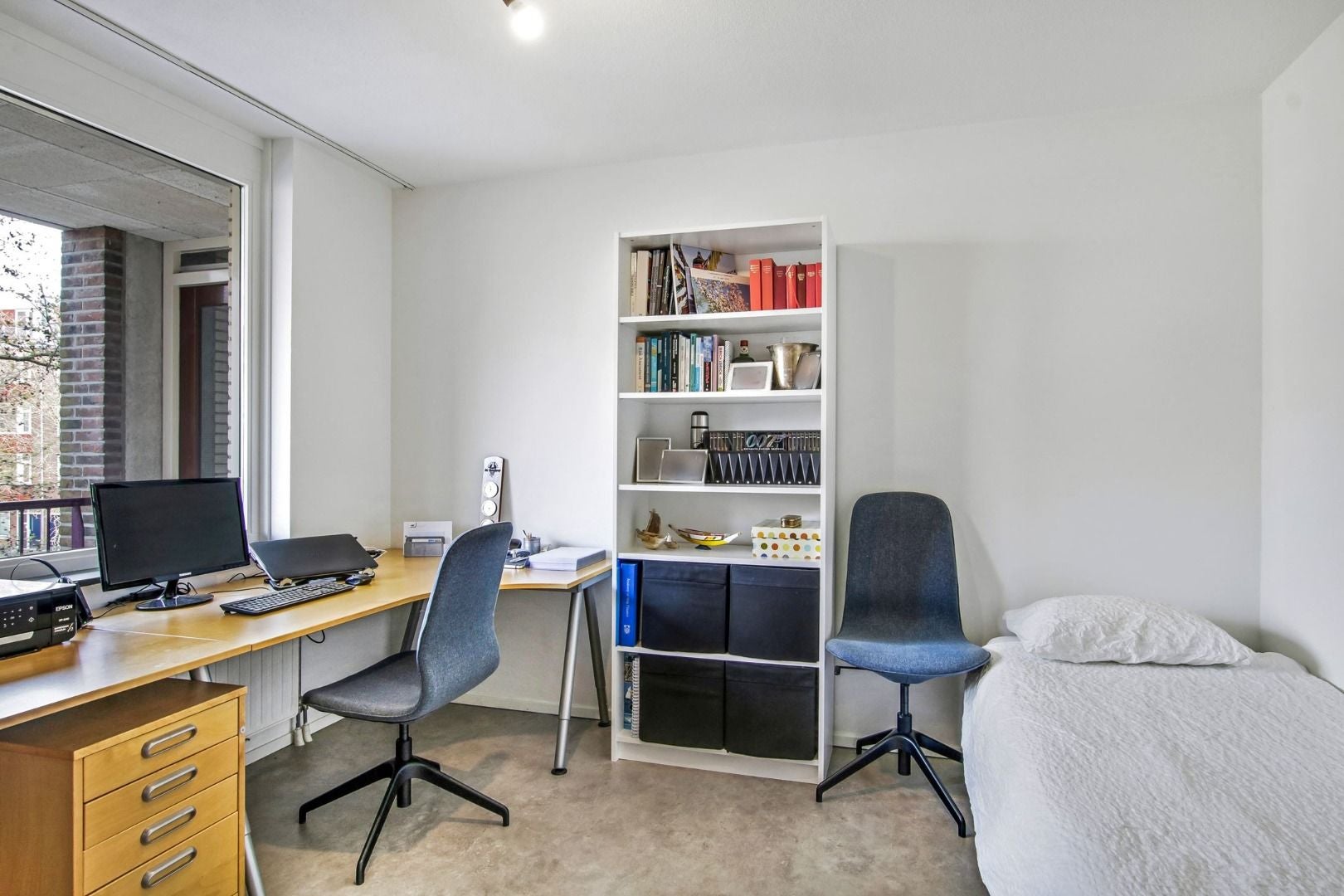 direct links tref je de eerste slaapkamer (10 m2) aan. Een fijne lichte kamer. Aan de achterkant bevindt zich de hoofdslaapkamer van ca.17 m2 met frans balkon. Een ruime kamer met meer dan genoeg ruimte voor een groot tweepersoonsbed en bijna 4 meter aan vaste kledingkasten.