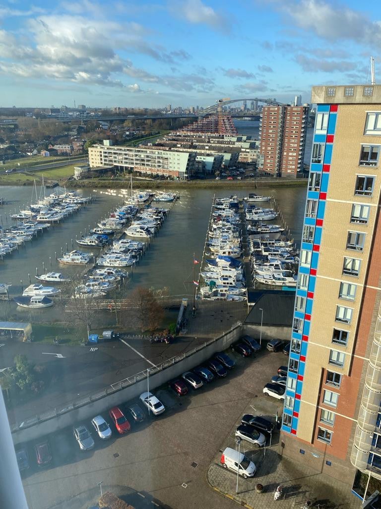 Zeer charmant roof-top appartement gelegen op de 15de verdieping met uitzicht op de Oude Maas. Het hele appartement is gestoffeerd (vloer en gordijnen) en voorzien van mooie sfeerverlichting.